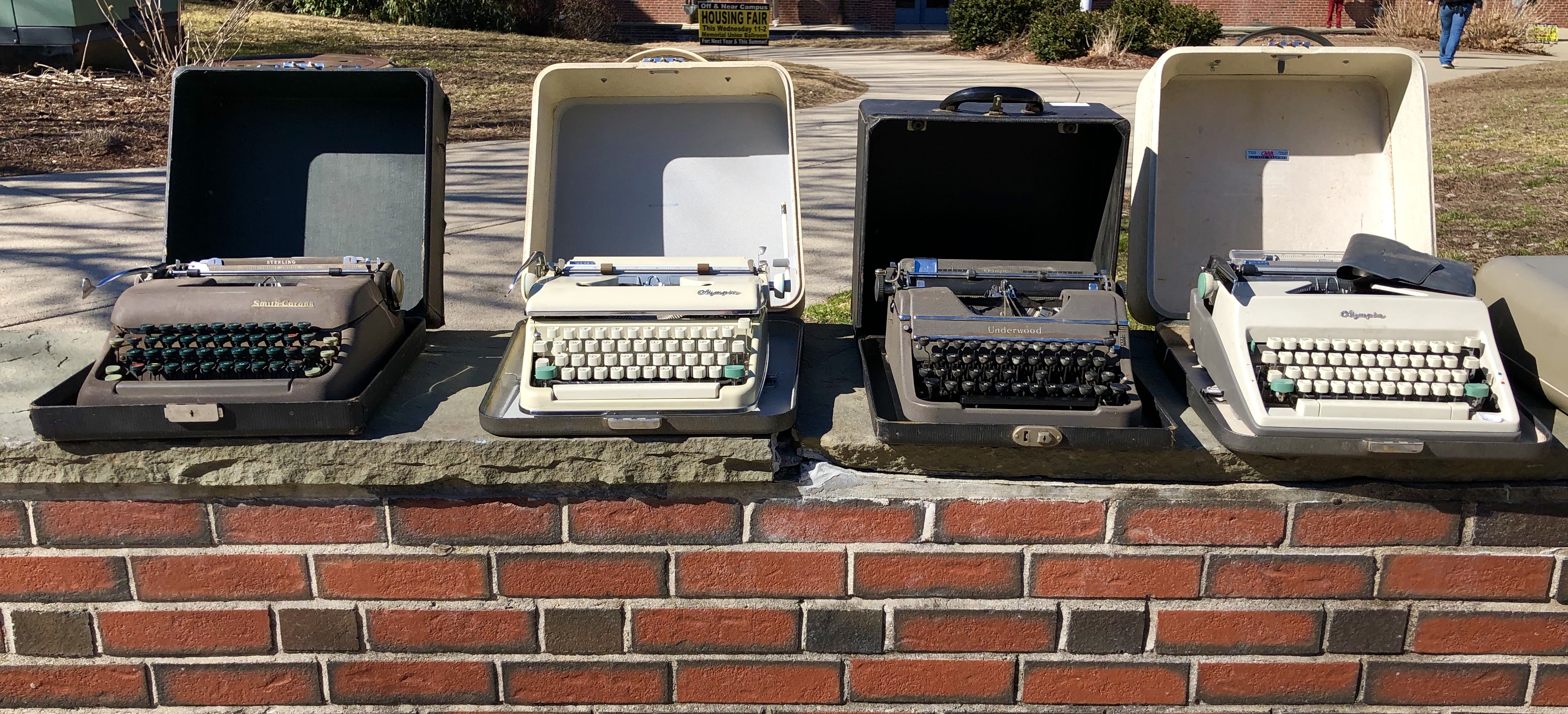 These portable manual typewriters were for sale on campus. They looked lonely. I wonder how many students—or reporters—may have used them in the past. I felt like I should take one home.
